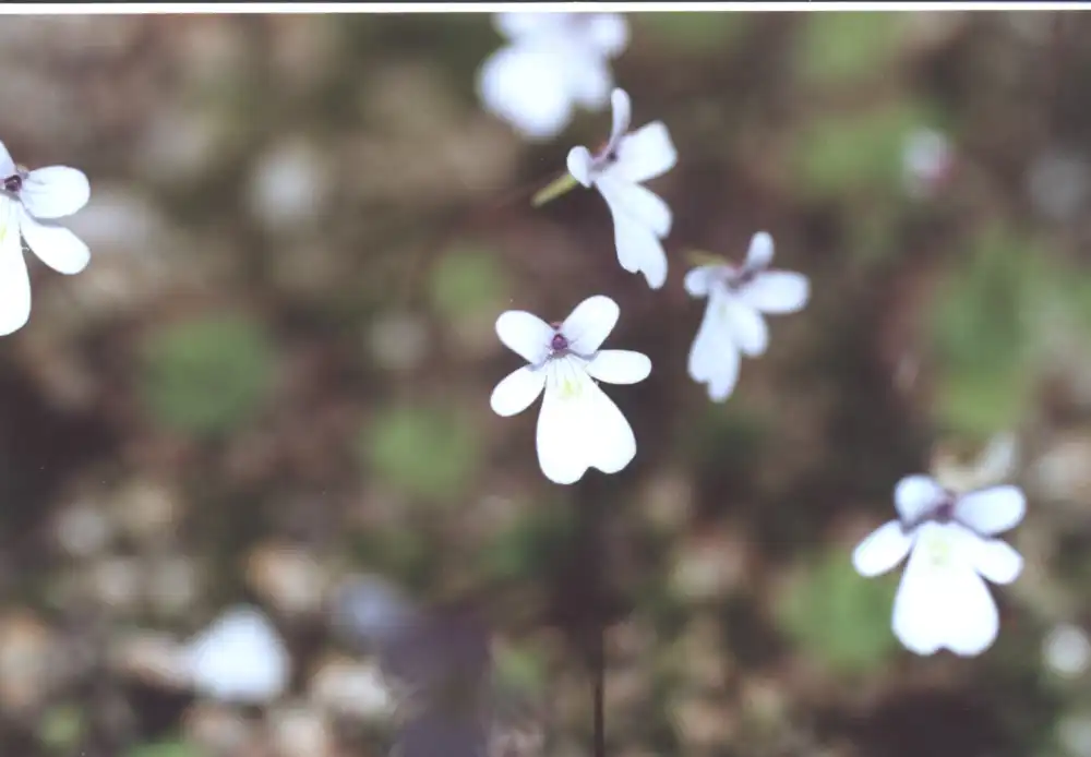 During the summers of 1989, 1990 and 1991 in one of the Burren populations, white flowered plants were seen and photographed. The flowers were enterely white...