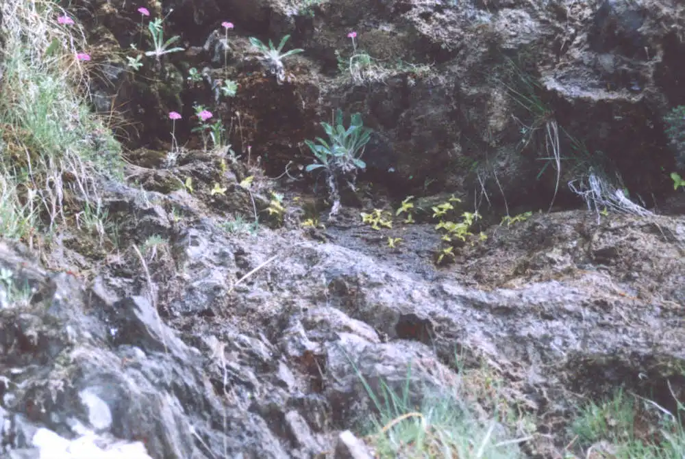 According to IPSG, Newsletter, the habitat “is a north facing, vertical limestone wall rising above Abies/oak woodland. The air is cool and windy. The rosett...