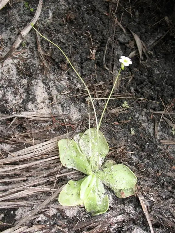 Pinguicula albida rosettes and flowers in a sandy soil. Photo : Yoannis Dominguez Rodriguez |
