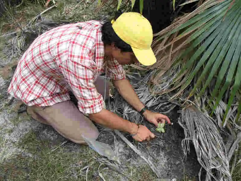 Yoannis collecting few plants for studies. i Photo : Yoannis Dominguez Rodriguez |