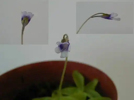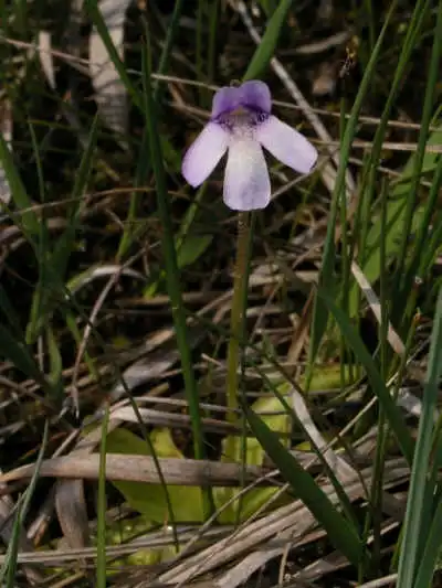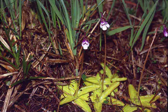 Jurg Steiger in “Pinguicula (Lentibulariaceae) : The cool climate species of the northern hemisphere - Morphology, Biology, Cultivation” a text from the second conference of the International Carnivorous Plants Society, Bonn (Germany), May 30 - June 1st, 1998 wrote : “in different regions of Europe, P. vulgaris occasionally appears with totally white corolla lobes while the rest of the flower is violet.
