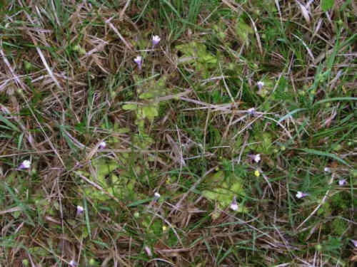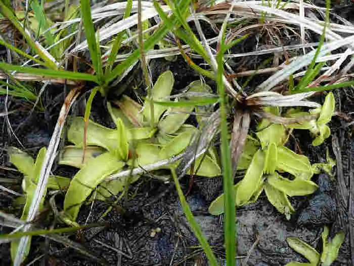 Cluster of Pinguicula bohemica growing among grasses. Photo : Adam Veleba