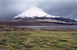 Typical lake border in Chili with Alpaga. Do you see Pinguicula chilensis ? This image in its original context, on the page : andes