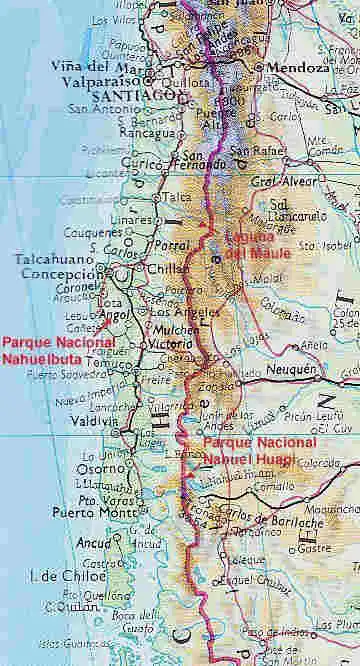 The National park Nahuelbuta is situated in the IX region of Chile, 40 km west of the city Angol and about 140 km north the province capital Temuco.