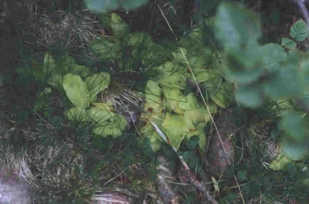 Pinguicula corsica f. pallidula in culture in my garden. This form is not hard to grow and can form large rosette Photo : Eric Partrat - august 2002 - |