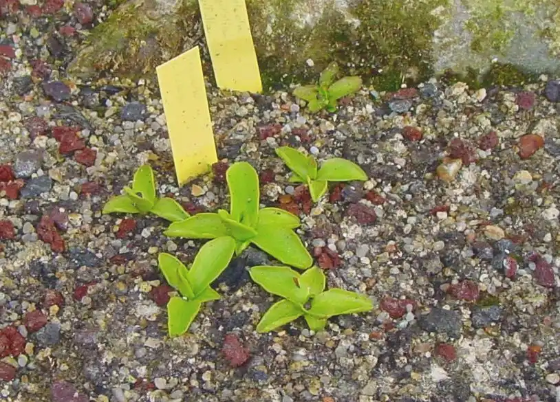 Pinguicula corsica f. pallidula in culture. Photo : S. Lavayssiere - May 2004 - |