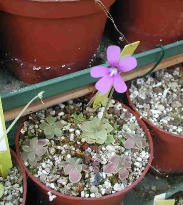 Pinguicula from 'Tehuacan' flowering from late summer rosette. Photo: Eric Partrat - September 02 - |