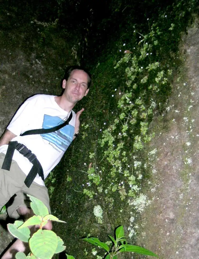 Fernando Rivadavia in front of a wall full of Pinguicula emarginata. Photo : F. Rivadavia |