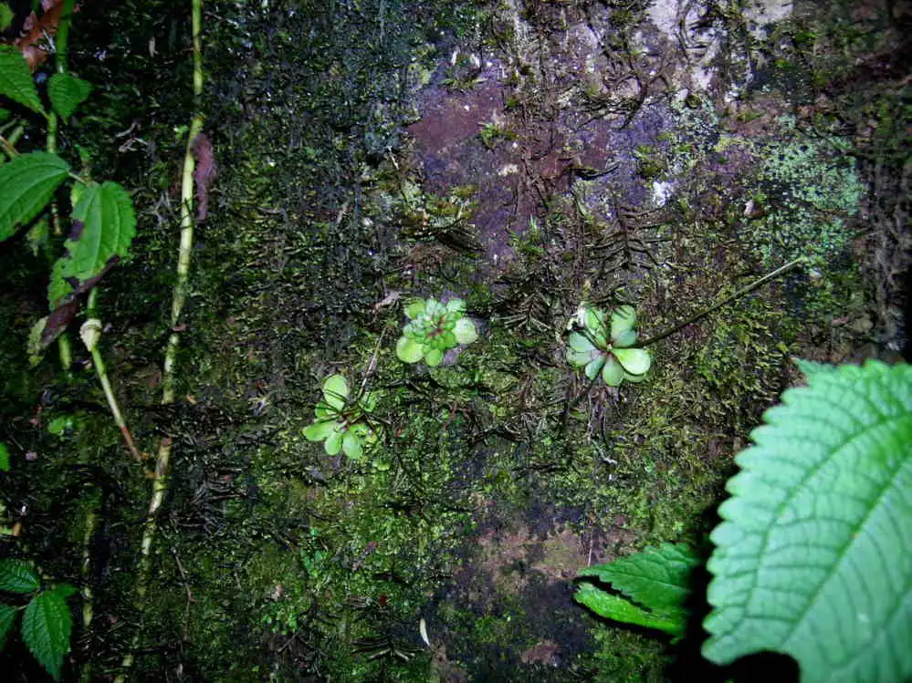 In culture, this Pinguicula is growing all the year round if temperature and humidity are high enough. The plant only forms different leaf rosettes depending on the dryness of the media. Is it an normal annual stage as for others Mexican Pinguicula, I don’t know. In his article, Johan van Marm, gave more informations : “We were at an altitude of 1400m, which, in combination with the north facing aspect, resulted in a cool micro-climate in spite of the otherwise tropical warmth of the area”.