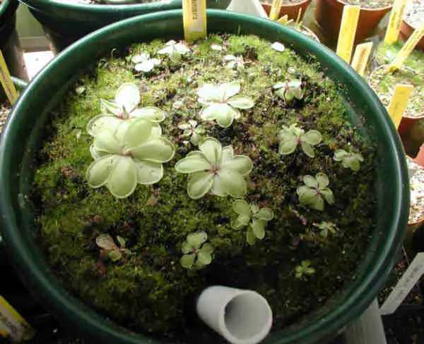 Cluster of Pinguicula emarginata in culture. Photo : Eric Partrat - November 1998 - |