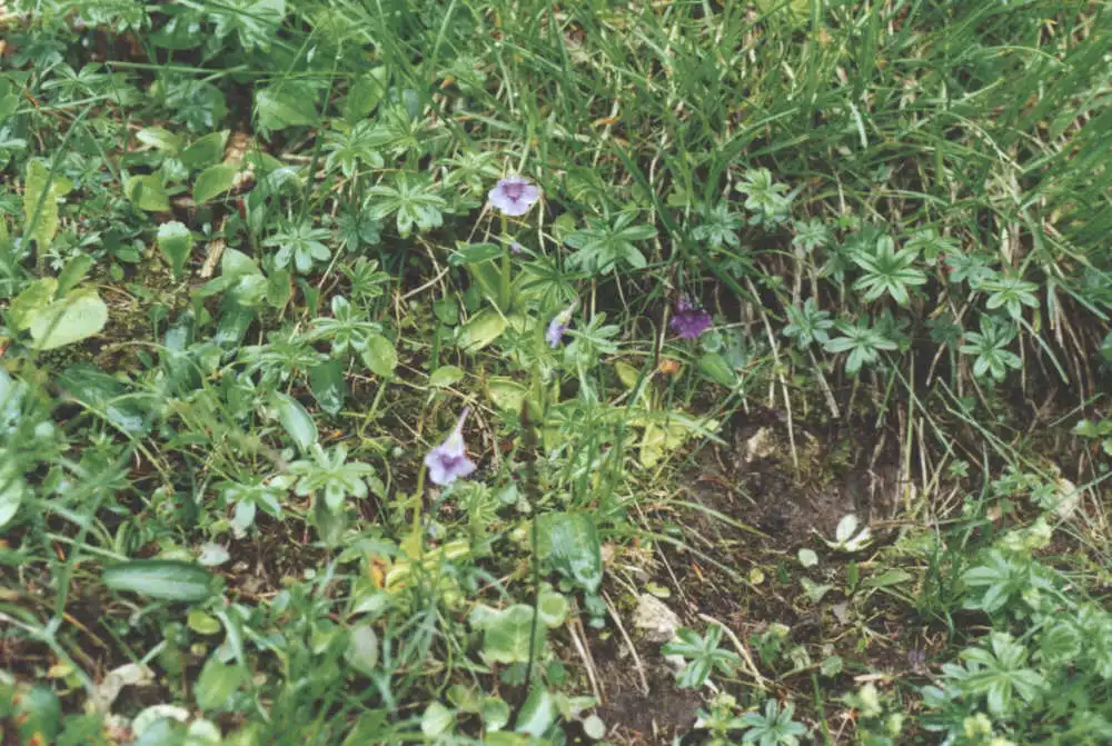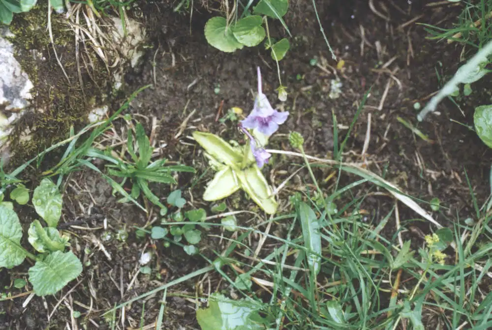 Pinguicula grandiflora f. pallida in loamy habitat. Location : Lelex, Crêt de la neige, Jura, France. Photo : Eric Partrat - Juin 1997 - |