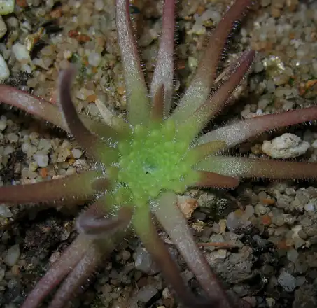 The life cycle of Pinguicula gypsicola in Mexico has two seasons, one wet and the other dry (see link). The leaf rosettes of the plant are different according to the season. During the resting months (winter) the plant develops a small succulent rosette made of numerous non-carnivorous leaves. The carnivorous leaves are produced in spring and during all summer.