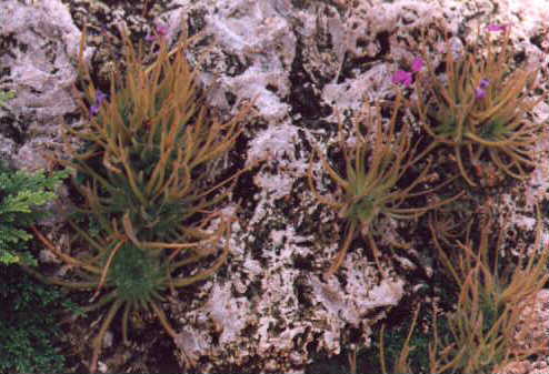 Collected on wet gypsum rocks. It is a typical lythophyte and it grows in shaded situation. The plant grows in the company of Cactaceae, Agave stricta, Selaginella cuspidata, Agave striata, Dasylirion longissimum, Dodonea viscosa, Hechtia glomerata and other Xerophytes. The biotope is usually completely dry. In winter, the temperatures can go down under O°C with almost no rain. The summers are very hot and the rains very scarce. During the night, there may be an intense dew.