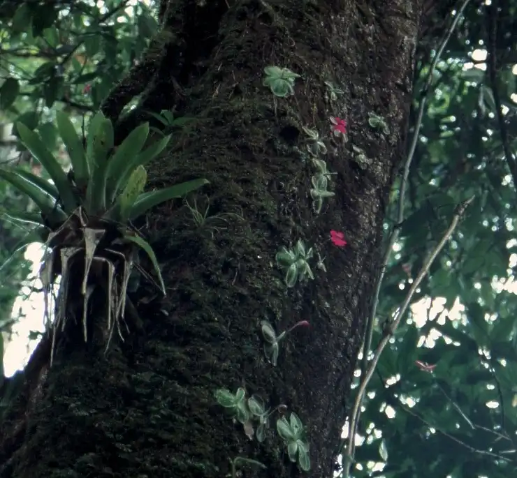 Typical “Bosque mesofilo de montana” It is located in ravines and in an area protected from wind and sun, which favours a high air humidity. This image in its original context, on the page : plantas-alred.html