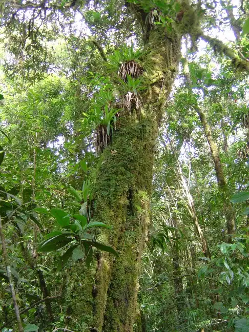 Montane cloud forest (bosque mesófilo de montaña – Rzedowski 1978) forms a band between (1000-) 1400-2250 m along the northern and eastern slopes of the Sierra de Juárez and Sierra de Los Mixes. The climate is cool (20°-14°C) and humid, with a mean annual precipitation exceeding 2000 mm and probably reaching 6000 mm in places (e.g. at Vista Hermosa) (Rzedowski and Palacios- Chávez 1977). Dominant trees average 20-30 m tall. Evergreen and deciduous species bearing many epiphytes occur together with palms, tree ferns, Ericaceae shrubs, vines, and moisture-loving herbs (Paray 1951, Lorence and García-Mendoza 1989; Martin and de Avila-B. 1990).