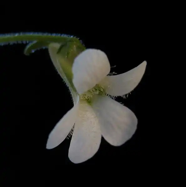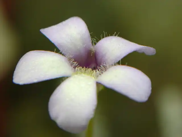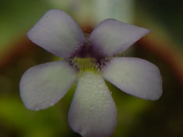 Close up of the flower of Pinguicula heterophylla showing the hairs on the corolla lobes. Photo : Ruben Resendiz