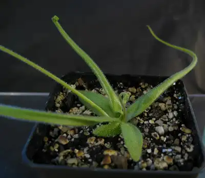 Pinguicula heterophylla in culture with young first summer leaves. Photo : Ruben Resendiz