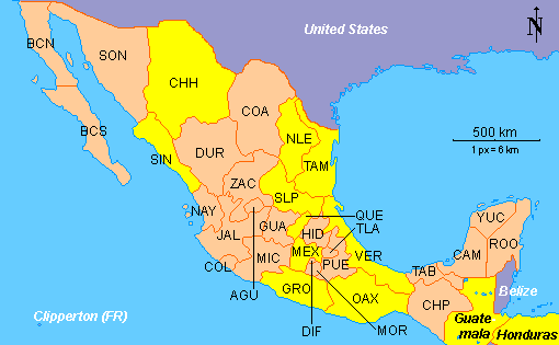 This species is widespread all over mesoamerica (yellow area), some of the locations found in :