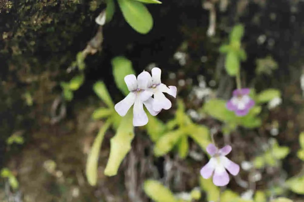 Some pale flowers of Pinguciula longifolia.