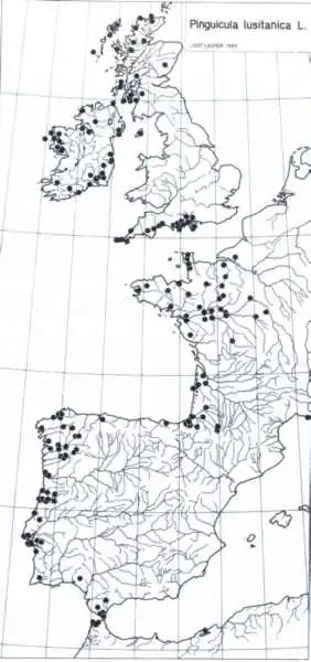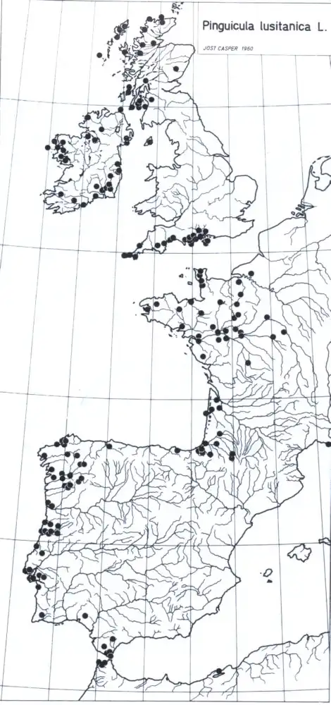 Distribution map of Pinguicula lusitanica according to S.J. Casper in his famous monography of genus Pinguicula.