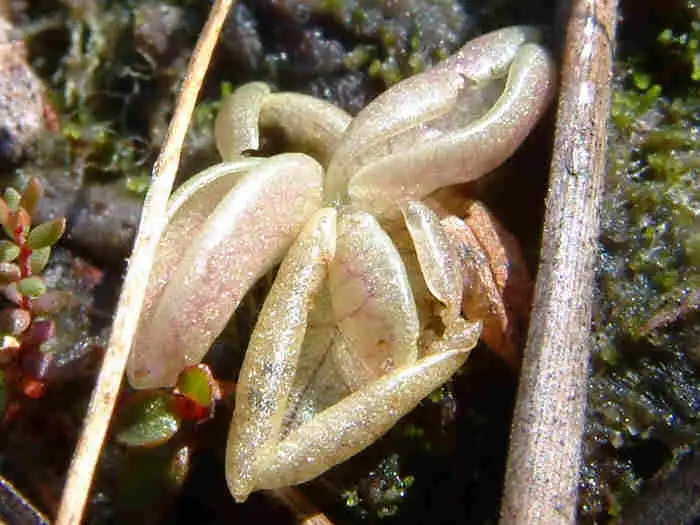 Pinguicula lusitanica, close-up of the rosette. From the same location : Hostens, Department 33, Gironde, France. Photo : Lionel Dromard - October 25 th 2003 - |
