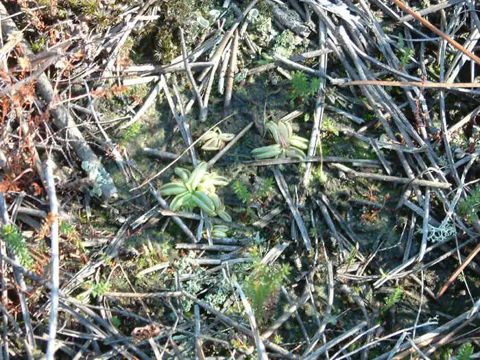 Pinguicula lusitanica, cluster of rosette in another south-west location : from Hostens, Department 33, Gironde, France. Photo : Lionel Dromard - October 25 th 2003 - |