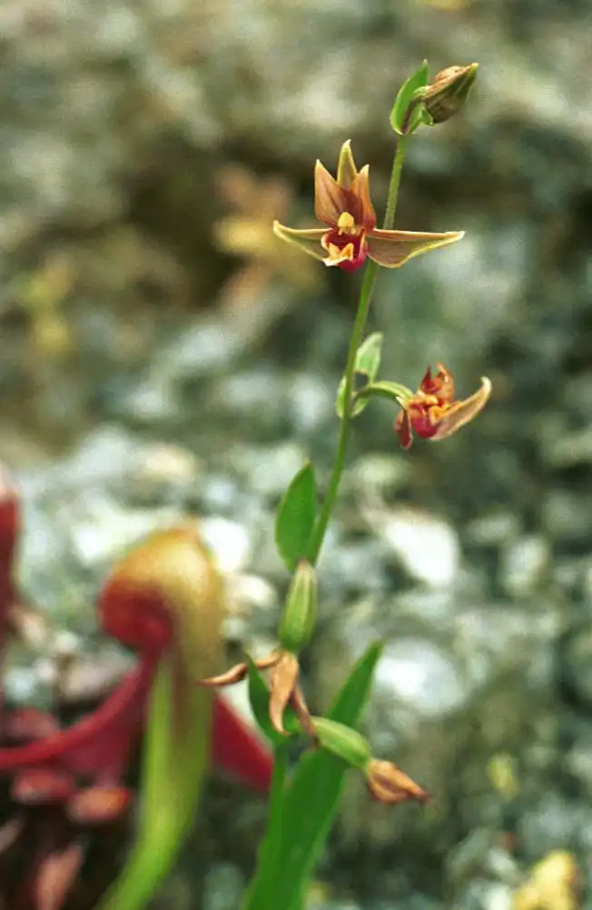 An orchid sharing the habitat with Darlingtonia califonica and P. macroceras subsp. nortensis Photo : Dieter Kadereit |