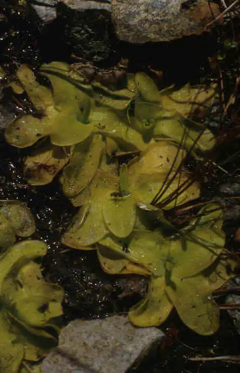 A group of Pinguicula macroceras subsp. nortensis with prey Photo : Dieter Kadereit |