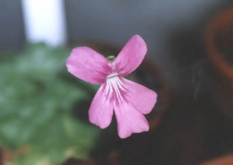 Pinguicula hemiepiphytica, close-up of the flower. Photo : Eric Partrat - April 1997 - |