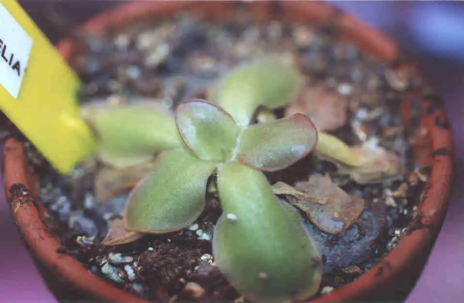 The life cycle observed in culture for this Pinguicula consists of two seasons, one wet and the other dry (see link). The plant forms different leaf rosettes according to the season. During the resting months (winter) the small succulent rosette is composed of numerous non-carnivorous leaves. The carnivorous leaves are produced in spring and during all summer. The life cycle of the plant is probably similar in it’s native habitat.