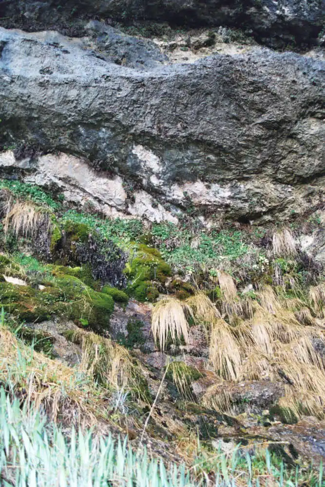 Pinguicula mundii can be found on the left of the fall. Many plants are difficult to reach. Photo : Eric Partrat - April 2003 - |