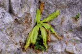 Pinguicula mundii growing on calcareous cliff. Photo : Eric Partrat - April 2003 - |