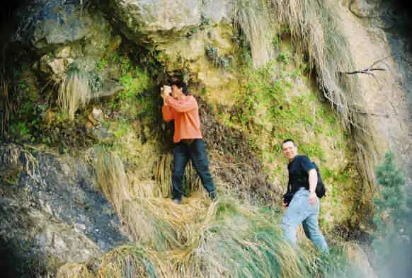 Left view of the previous picture, showing that we climbed up there ! Photo : Eric Partrat - April 2003 - |