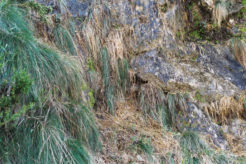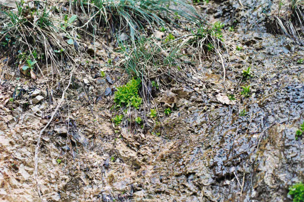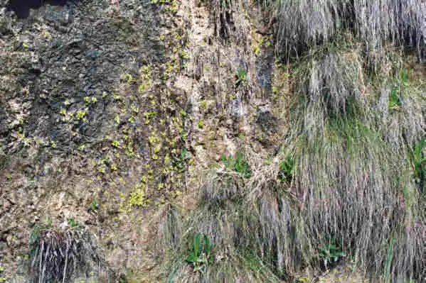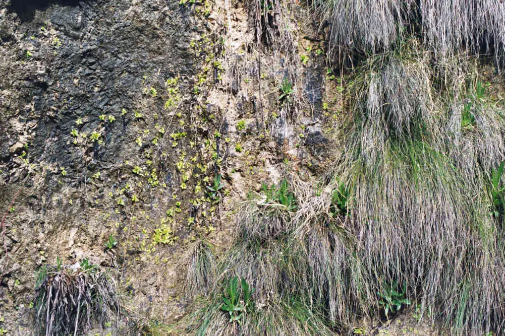 We noted many plants felt at the bottom of the cliff that will died as soon as the grasses will be taller. This may be a natural way of managing new places on this cliff for youngest Pinguicula vallsineriifolia. Photo : Eric Partrat - April 2003 - |