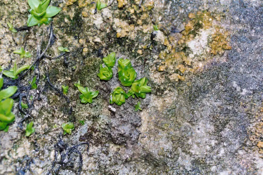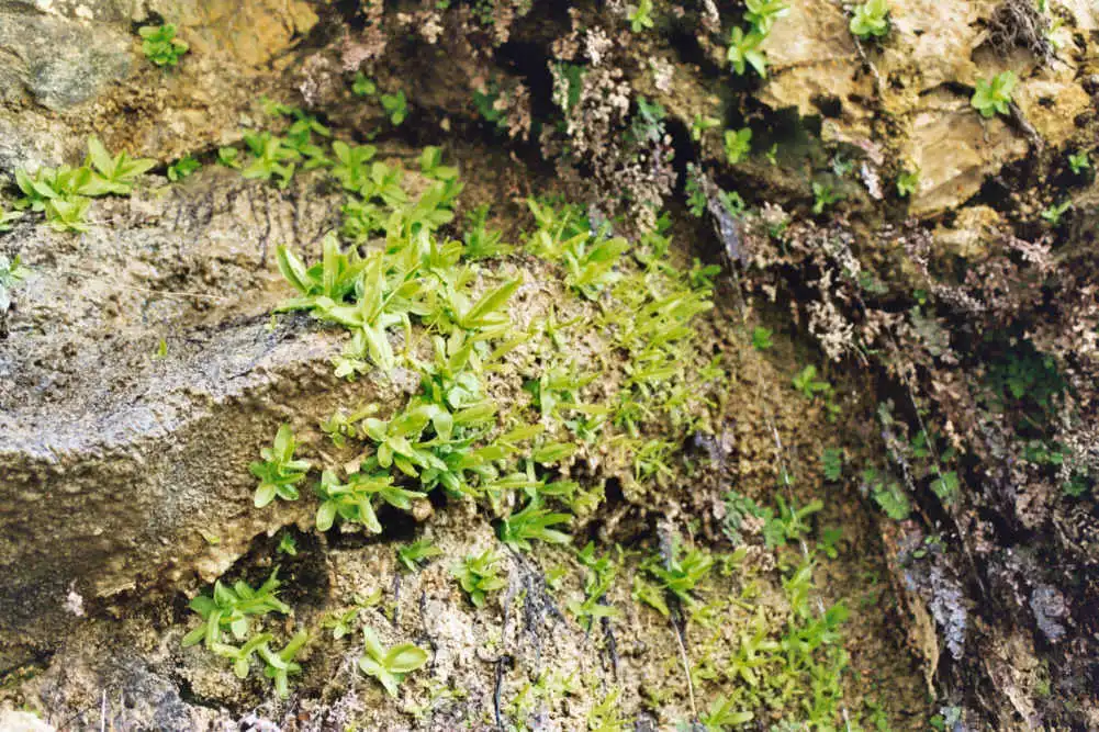 A cluster of Pinguicula vallisneriifolia overhanging in the gorge. Photo : Serge Lavayssiere - August 1994 - |