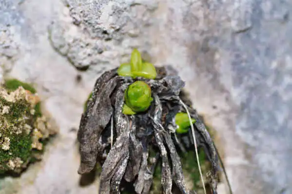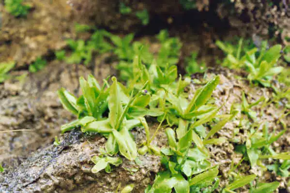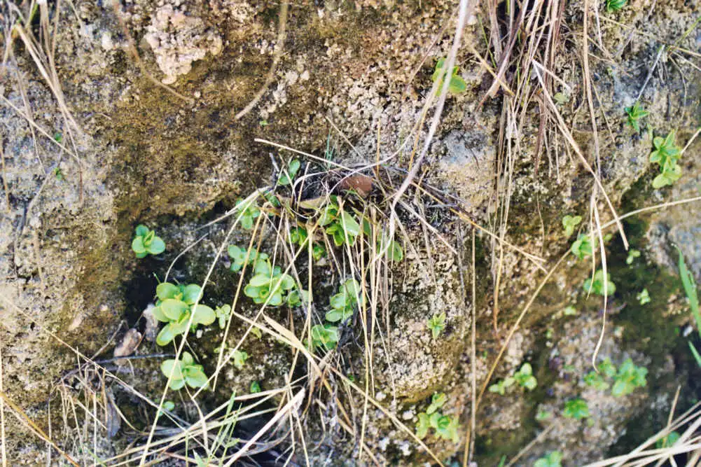 Cluster of winter hibernacula of Pinguicula vallisneriifolia beginning to open. Photo : Eric Partrat - April 2003 - |