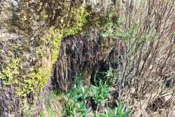 P. vallisneriifolia can be found on the top of the fall, in very wet conditions. Photo : Eric Partrat - April 2003 - |