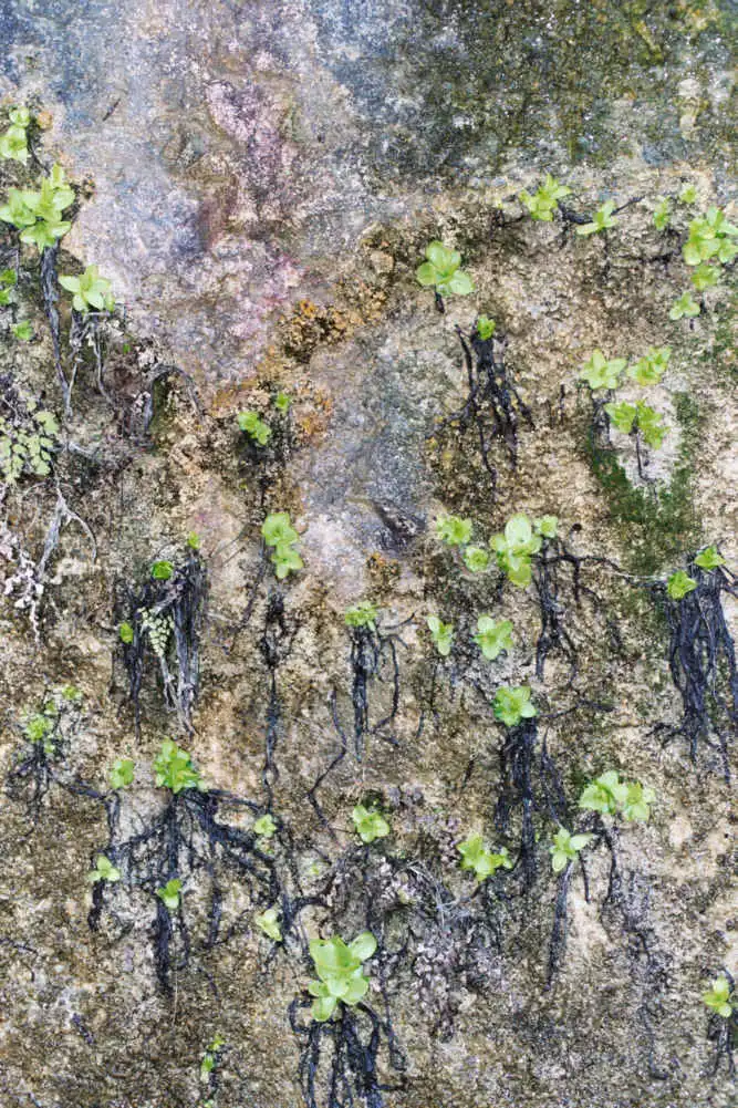 This location of Pinguicula vallisneriifolia is drier than all the other one depicted. No water is dripping on the cliff. Photo : Eric Partrat - April 2003 - |