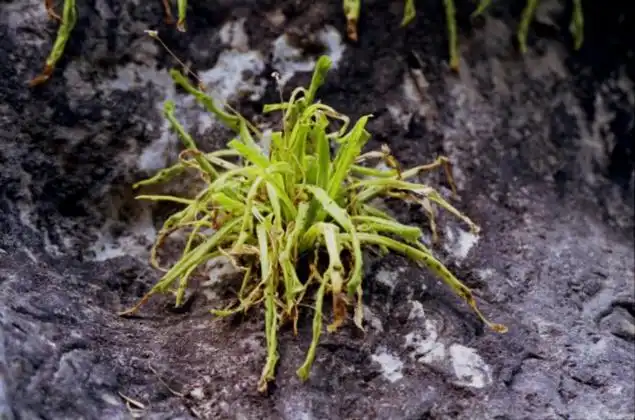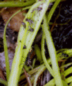 Cluster of winter hibernacula of Pinguicula vallisneriifolia. As you can see, some plants were still dormant in april 2003. Photo : Eric Partrat - April 2003 - |